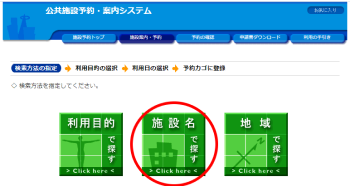 「施設名で探す」をクリックし、目的の施設を選んでください。